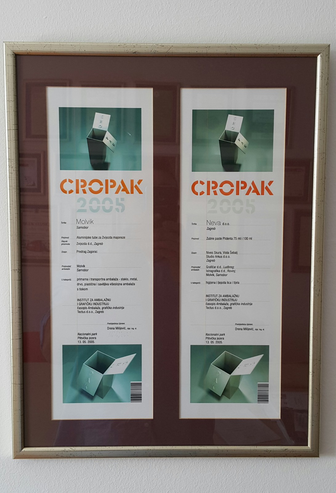U sklopu stručnog savjetovanja na Plitvicama od 13. do 14. svibnja 2005. pod nazivom „Ambalaža – domaća i svjetska iskustva“, a u organizaciji tvrtke Tectus d.o.o. iz Zagreba i Instituta za ambalažnu i grafičku industriju održana je i svečanost dodjele nagrade Cropak 2005. – Hrvatski Oskar za ambalažu.