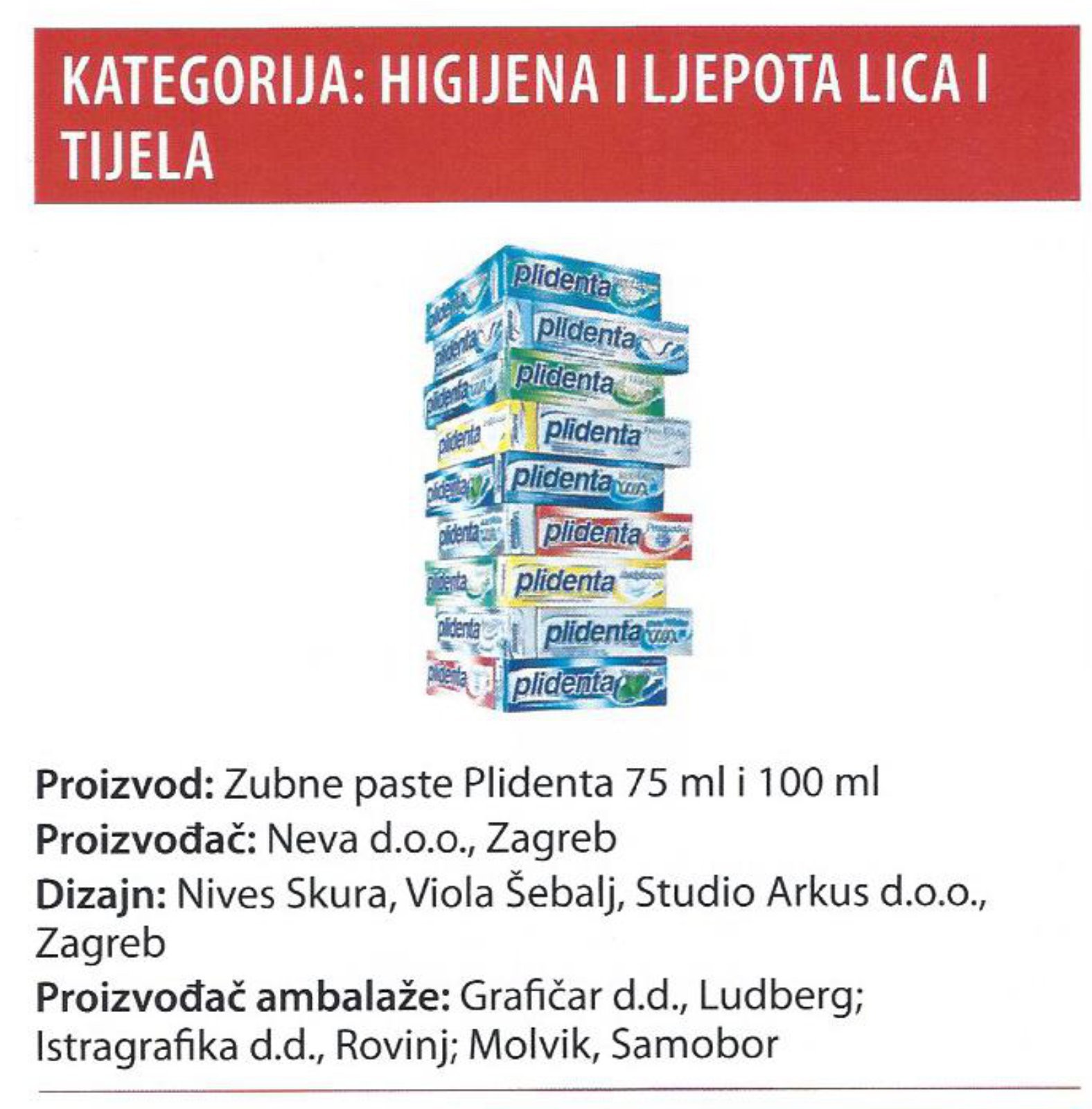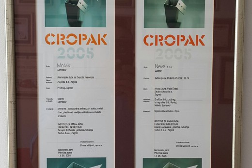 Na istom eventu osvojen je Oskar za ambalažu Cropak 2005. i za tube Plidenta; vlasnik proizvoda Neva-Zagreb; proizvođač ambalaže Molvik-Samobor.